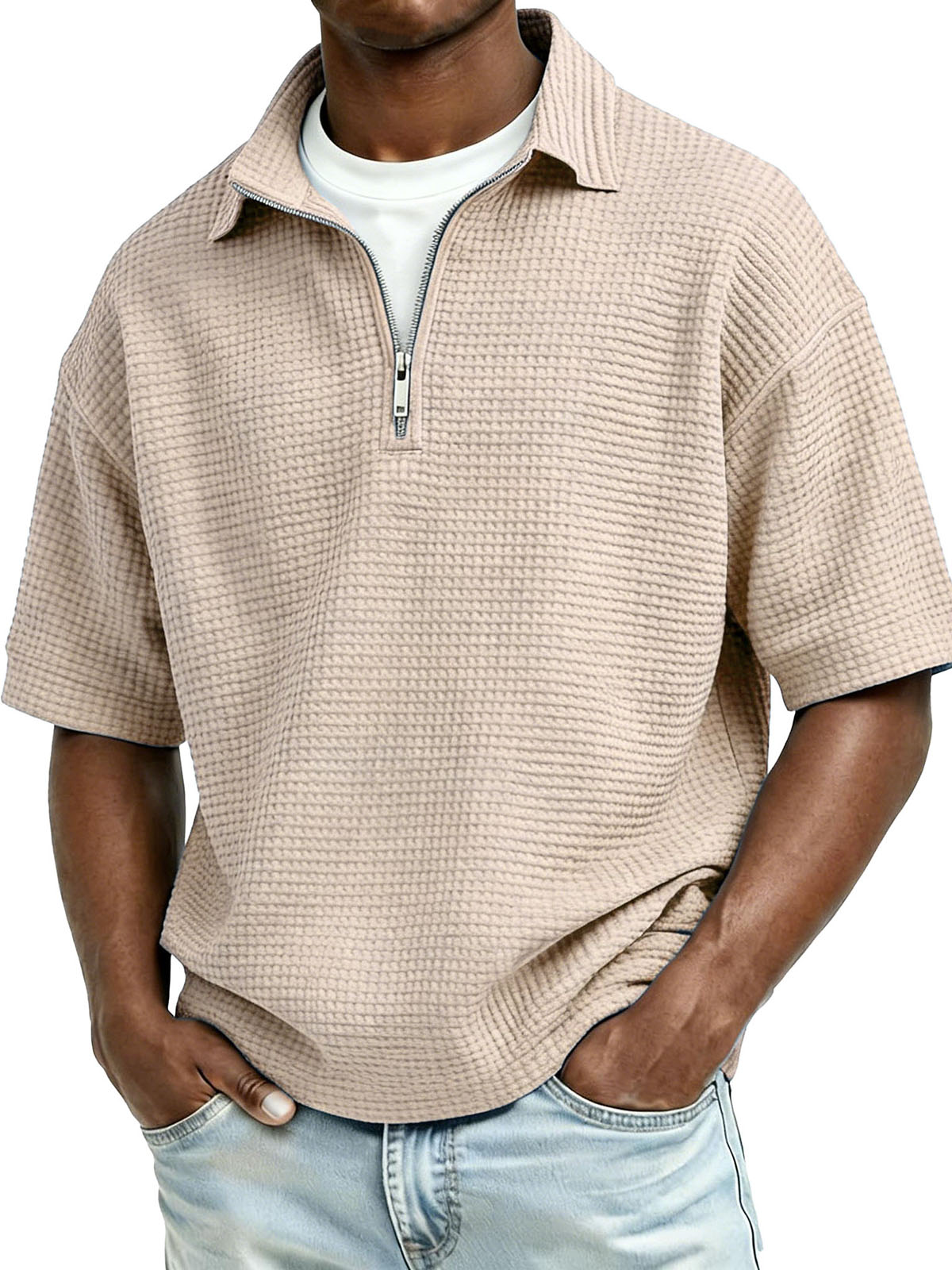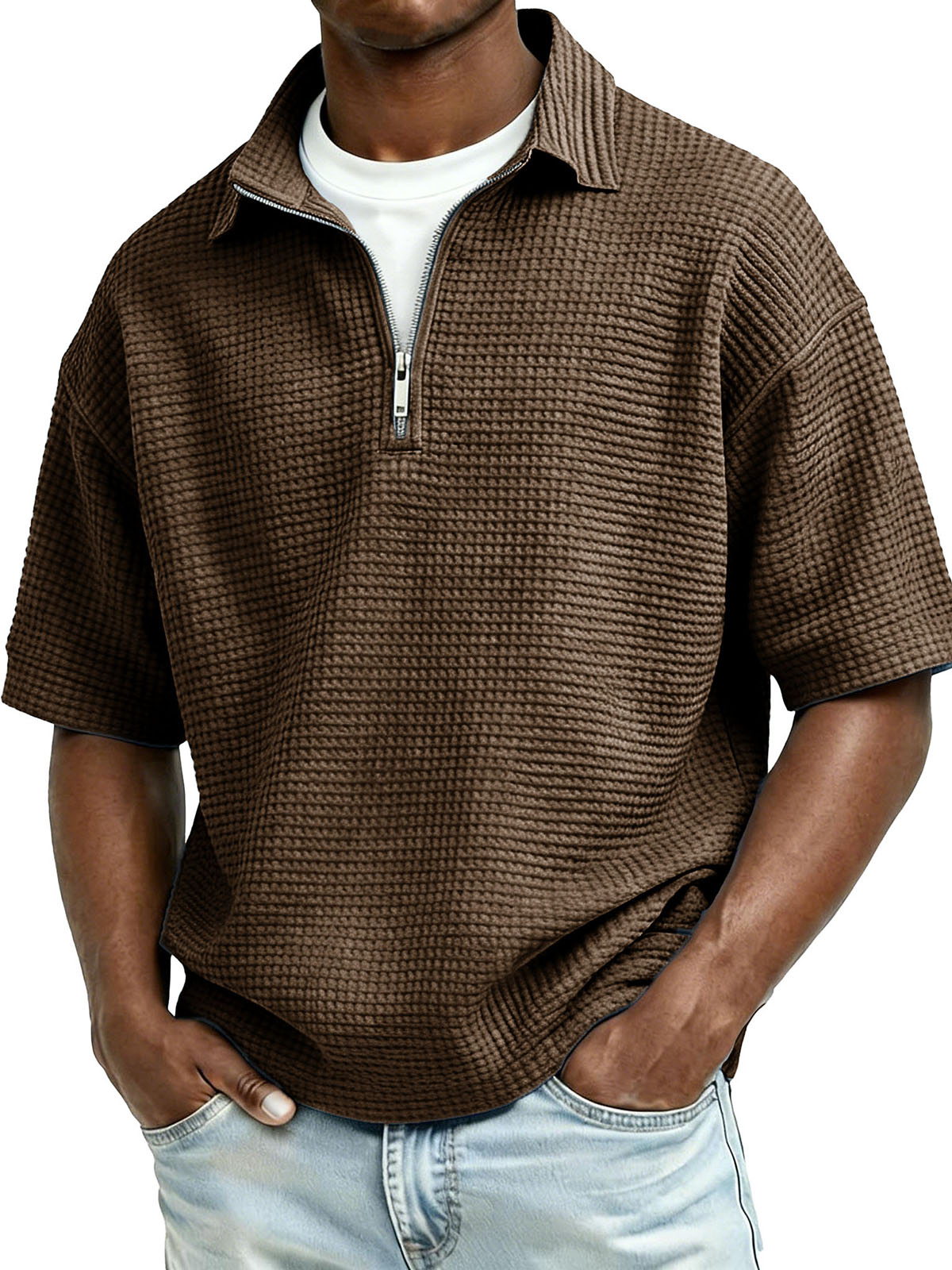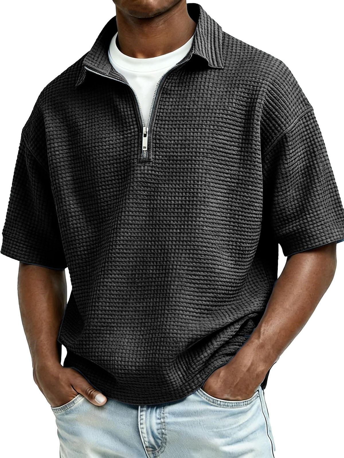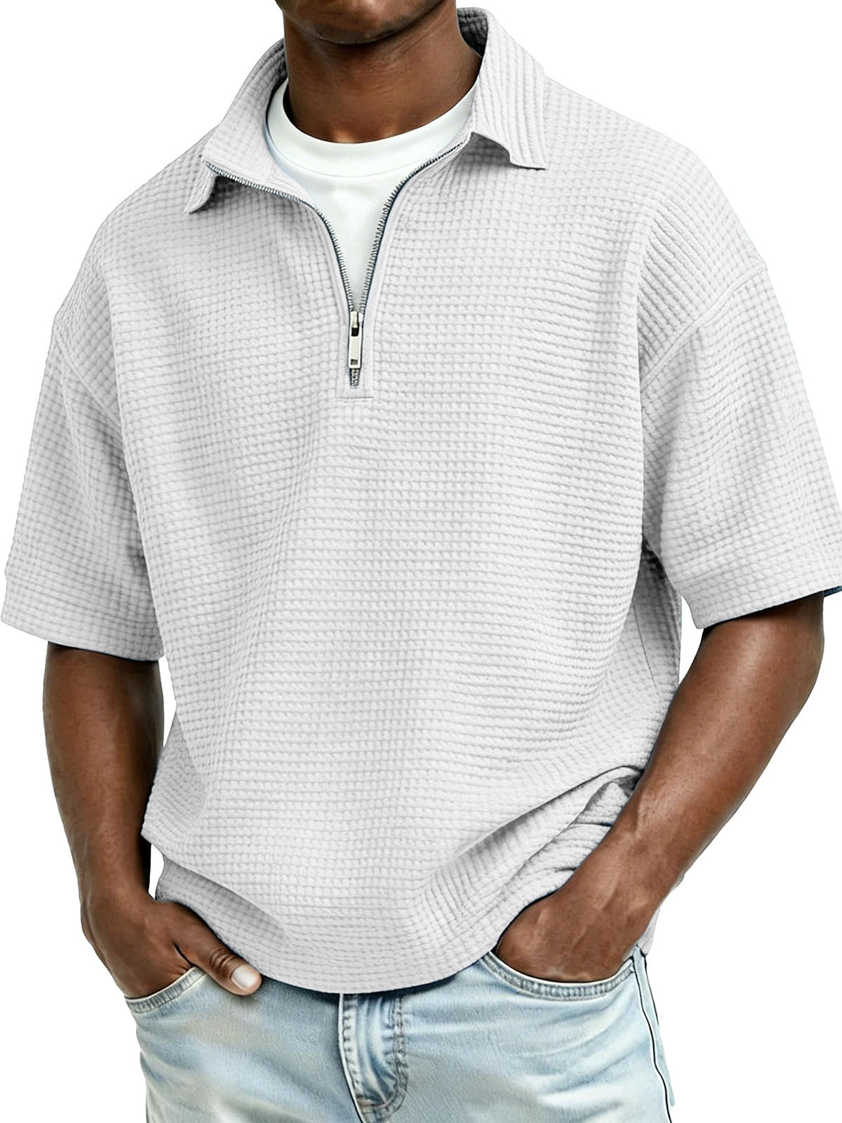 Men's Fashion Casual Waffle Gown Short-Sleeve Polo Shirt
